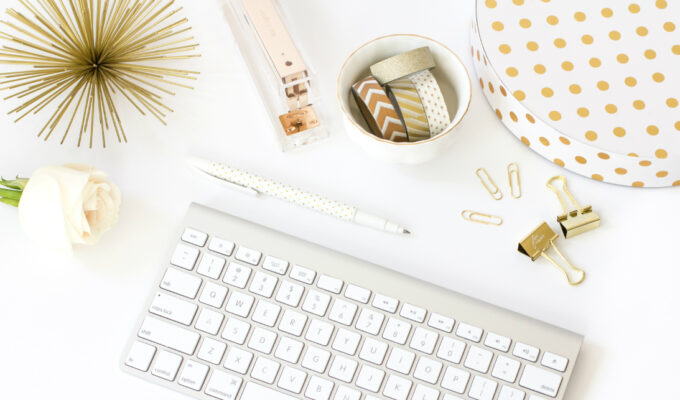 Tip # 4 – USE PRETTY ORGANIZERS: From colorful file folders to binders with dreamy, mood-boosting prints, nothing makes a stylish statement like pretty organizers. Katie McCann (a NYC-based home and office organizational coach from Maeve’s Method) says, “Get a functional yet ascetically pleasing pen holder, file folder, etc so you’ll enjoy storing and retrieving the items you need to function throughout your day.” These pretty organizers will motivate you to stay organized by filing away important documents, and help give your cubicle a gorgeous decor boost.