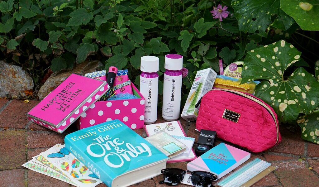 The winner of this $250 giveaway will receive a Cosmetic Bag by Betsey Johnson, CHI Kaboom Hairbrush, The One & Only Novel by Emily Giffin, Flash Tattoos Metallic Set, Kate Spade New York ‘Pretty Little Thing’ Notebook, Core Kitchen Hashtag Ice Cube Mold Set, StriVectin Ultimate Restore Shampoo & Conditioner, Garnier SkinActive Clearly Brighter Dark Spot Corrector, OWL Sunglasses, Be a Bombshell Cosmetics ‘Bora Bora’ EyeshadowPaper Destiny Monarch Bike 8-pc Card & Envelope Set from Papyrus, Memo Pad & Pencil Set, Macbeth Collection Bath Trio Set, Pastel Be Happy Always Notebook, and a polka dot ‘Happiness Lies Within’ Storage Box.