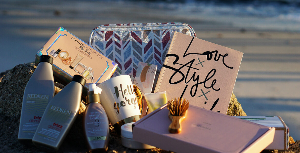Ok, I’m obsessed with EVERYTHING in this giveaway! The cute mug and catchall AND that Sephora glow kit?! I could definitely use that frizz hair care come humid summertime too!