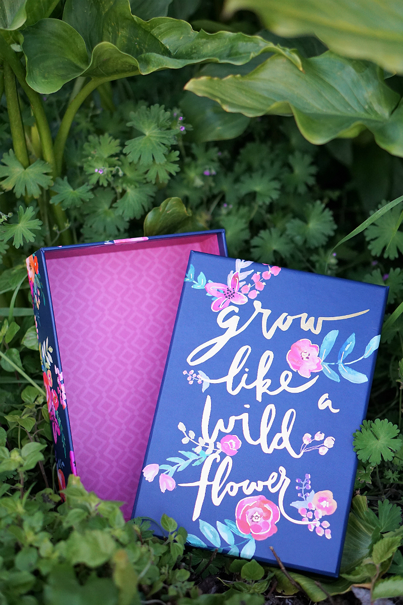Grow Like A Wild Flower Storage Box: Featuring a feminine floral design, whimsical writing, interior pink ikat-inspired pattern, and all-over print, this beautiful storage box will help you stay organized. Use it to store your favorite accessories, jewelry, or even photos and trinkets you’ve saved over the years.