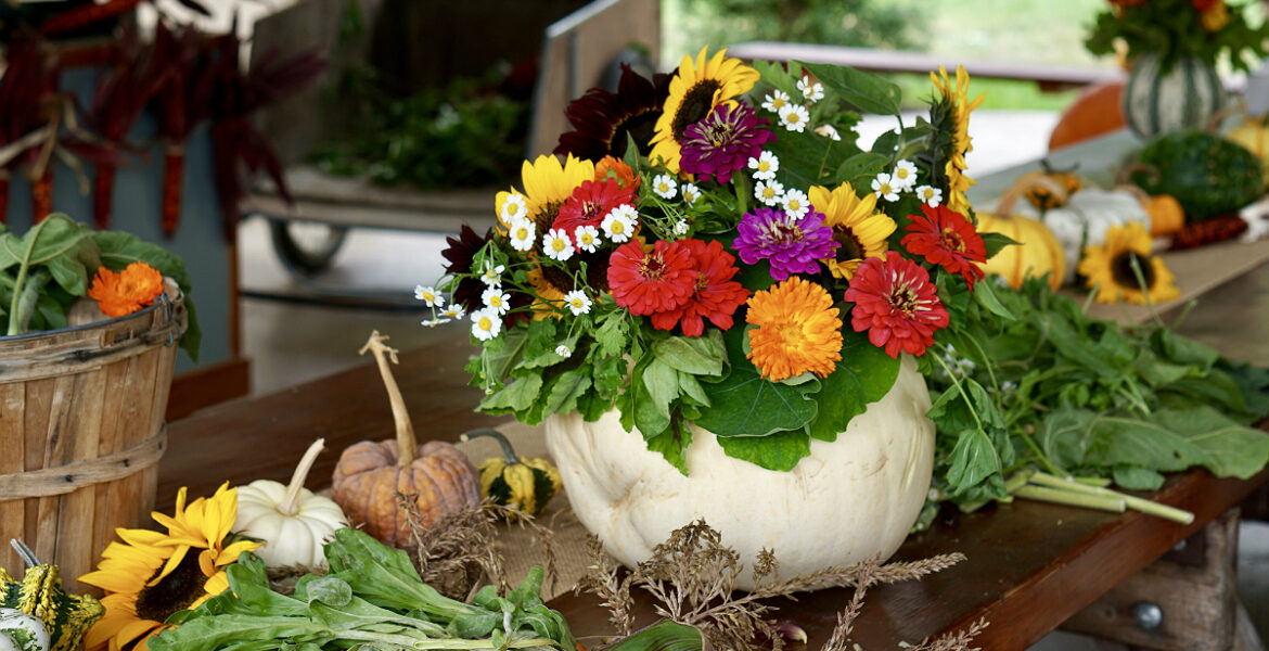 To celebrate Autumn, last weekend I enjoyed a Wildflower Walk & DIY Pumpkin Flower Centerpiece workshop hosted by the newly re-opened Farm Stand at Earthbound Farm in Carmel, California and led by organic farmer Janna Jo Williams.