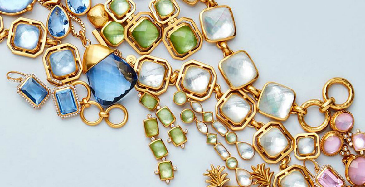 From bold gilded bracelets and necklaces to dazzling semi-precious gemstones in a rainbow of colors, jewelry designer Julie Vos is known for creating exquisite gold-plated pieces that are both stylish and classy.